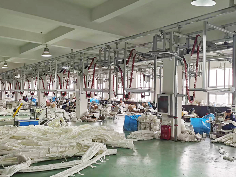 引進(jìn)德國(guó)、英國(guó)兩條先進(jìn)的濾料生產(chǎn)線,采用全自動(dòng)進(jìn)口縫合生產(chǎn)線和熱能粘合縫制濾袋,具有日產(chǎn)1萬平過濾材料、2000條各種濾袋生產(chǎn)能力